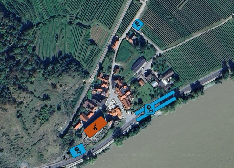 Dieser Parkplatz ist auch eher klein. Bitte diesen Parkplatz als allerletzte Option verwenden, da hier unbedingt noch Platz für das Brautpaar und die enge Familie sein sollte. Mit gegenseitigem zuparken können bis zu 10 Autos untergebracht werden.